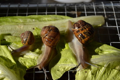 Os voy a contar un caso una de mis experiencias: Después de varias pruebas comenzando desde recién nacidos con pésimos resultados decidí guardar los de tamaño pequeño que introducían en las bolsas que compraba, con todos estos reuní 700 kilos preparé un invernadero con cantidad de vegetación, con su malla sombreadora, solté los caracolitos y pasaba ratos observándolos por la noche, era un verdadero espectáculo ver como devoraban toda la vegetación y el ruido de sus mandíbulas (es para oírlo) todo era perfecto hasta que se comieron todo en poco tiempo, aquí llegaron los problemas, me fui a comprar pienso a una fabrica que en el saco se leía pienso compuesto para caracoles ( por cierto la fabrica ya no lo hace mas) en aquellos tiempos me costo a unas 40 pesetas kilo 0.24€ de hoy, comérselo si que se lo comieron rápido, entonces tuve que ir a por mas y mas no se si comían mas ellos o las ratas y gusanos que fueron acudiendo, no contentas con el pienso se iban comiendo los caracoles y rompiendo la red, se reían de los gatos las trampas cantidad de impedimentos y de mi, los retire para llevarlos a otro sitio y al pesarlos había perdido mas de 400 kilos.