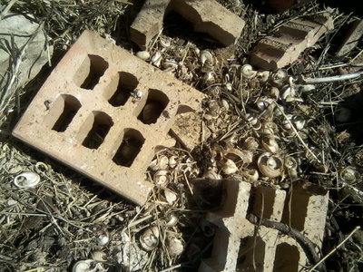 Ladrillos para construir jaulas. Tienen tres inconvenientes, uno que absorben suciedad, dos que por las rayas o dibujo que tiene el ladrillo cuando el caracol se pega a el queda desprotegido de las hormigas. tres que en zonas de hielo si están húmedos se rompen por helarse el agua de su interior.