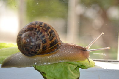 Me ha gustado siempre observar los caracoles en su medio natural y su comportamiento, en una ocasión me llamo la atención como un buen grupo de caracoles había sobrevivido a mas de 35º en un terreno sin nada de vegetación y sin ningún sitio para ocultarse excepto un panel de aglomerado blanco, en estado de estivación pasaron el verano, igualmente que en zonas como Andalucía pintan las casas de blanco para reflectar los rayos solares el termómetro detrás del panel marcaba varios grados menos, una buena lección